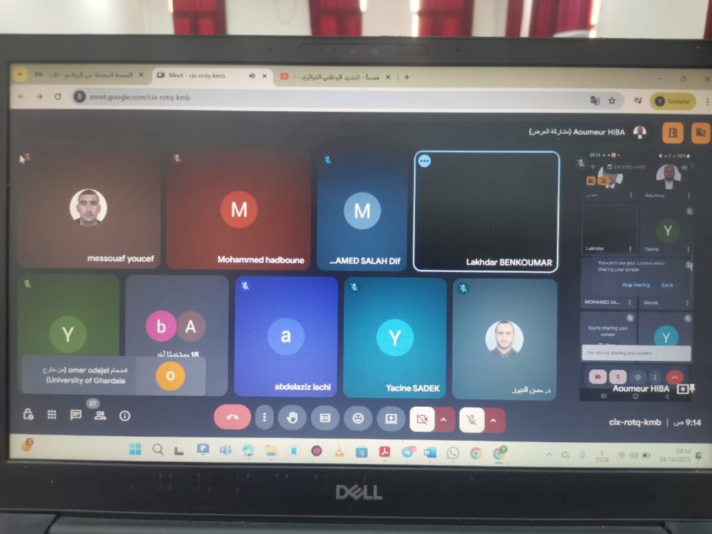 نظّم قسم العلوم الإسلامية بكلية العلوم الاجتماعية والإنسانية بجامعة غرداية الملتقى الوطني عبر تقنية التّحاضر عن بُعد والموسوم ب: “العُرف ودوره في تحقيق الأمن الفكري والاجتماعي” حيث افتتُح المُلتقى بكلمات ترحيبية بالسادة الباحثين المُشاركين في الملتقى والاعلان الرّسمي عن افتتاح أشغال الملتقى من طرف السيد العميد: أد صالح بوسليم بالنيابة عن مدير الجامعة بحضور الهيئة التدريسية لقسم العلوم الإسلامية، ، ثمّ تلتها جلسات علمية، على أن تُستكمل فعاليات الملتقى غدا الإربعاء بإذن الله تعالى.