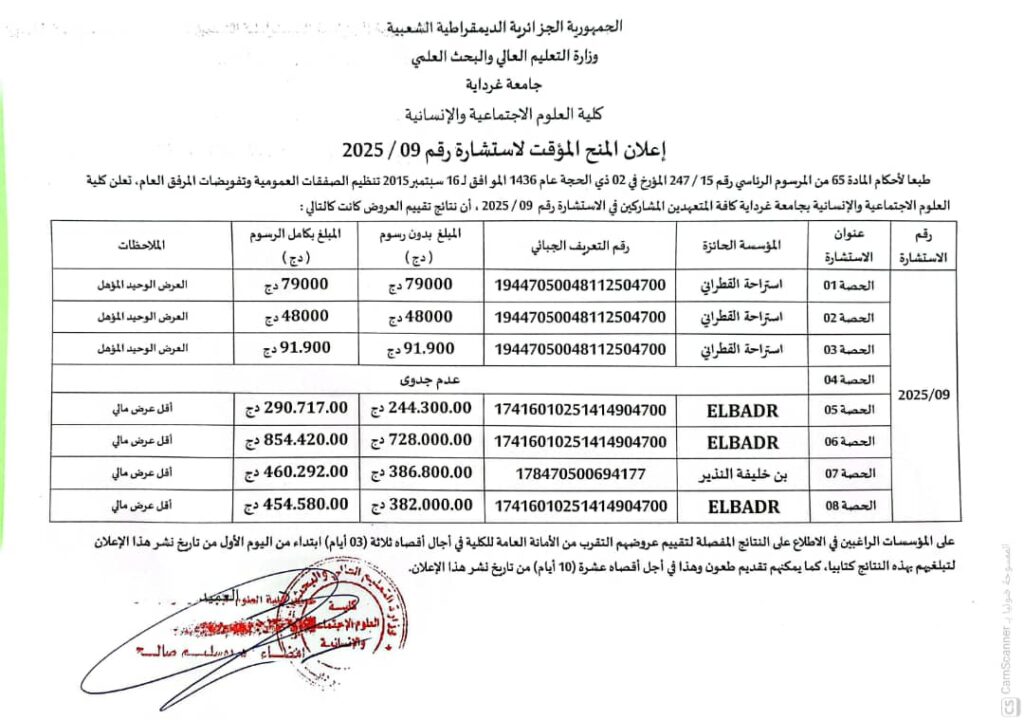 تعلن كلية العلوم الاجتماعية والانسانية بجامعة غرداية عن منح مؤقت لاستشارة.